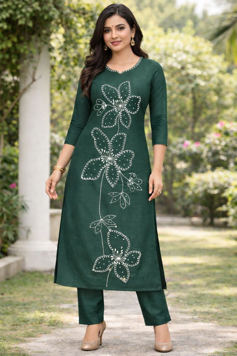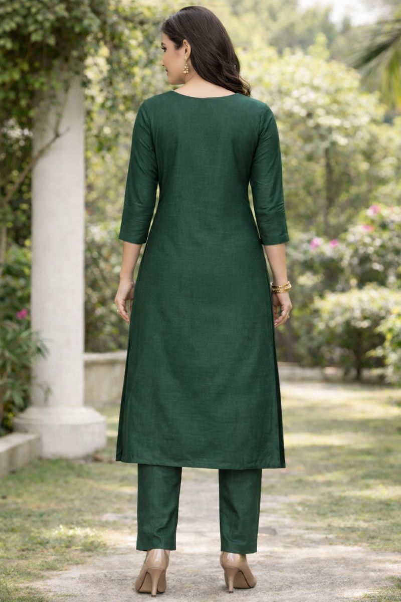 Bottle Green Cotton Kurta Set