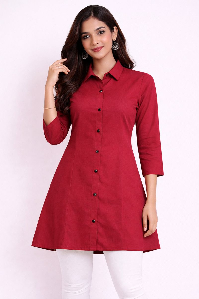 Solid A-Line Shirt-AE-TOP-02528