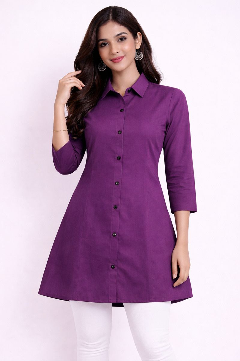 • Solid color A-line shirt tunic, Length 74 CM